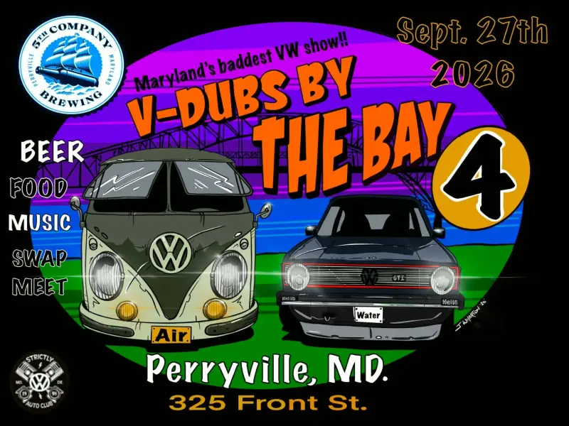 Welcome to V-Dubs By The Bay, the premier car show for Volkswagen, Audi, and Porsche enthusiasts! Join us in Perryville, MD, for a celebration of automotive passion, stunning vehicles, and a vibrant community. Whether you're showcasing your ride or admiring others, prepare for an unforgettable experience.
